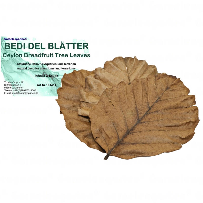 De värdefulla polyfenolerna, karotenoiderna, flavonoiderna och tanninerna gör Bedi Del-bladen till ett allroundblad i naturliga akvarier och terrarier.