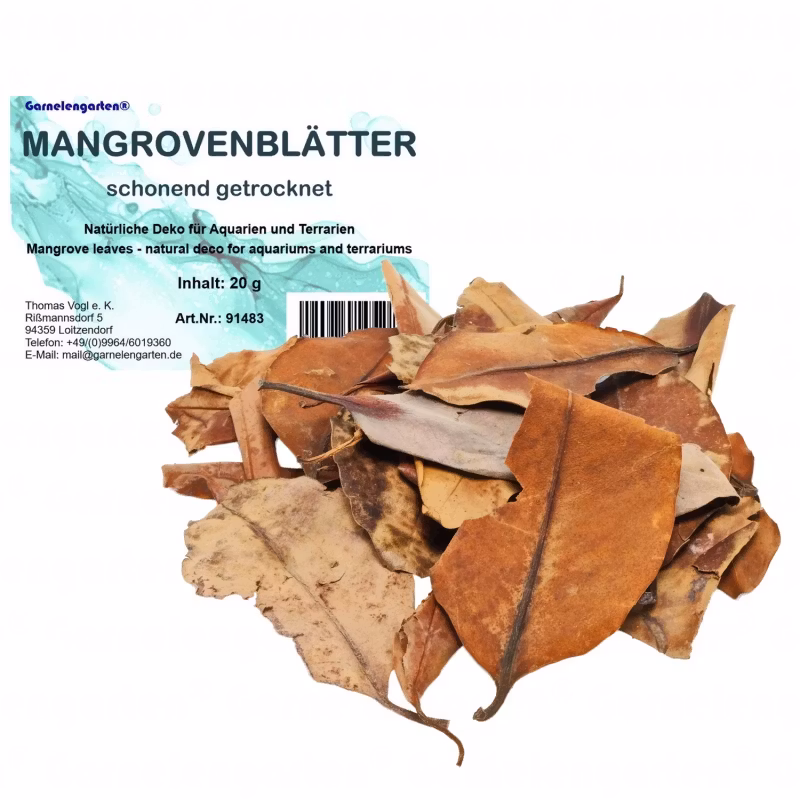 De värdefulla polyfenolerna, karotenoiderna, flavonoiderna och tanniner gör mangrovebladen till en allroundprodukt i naturliga akvarier och terrarier.