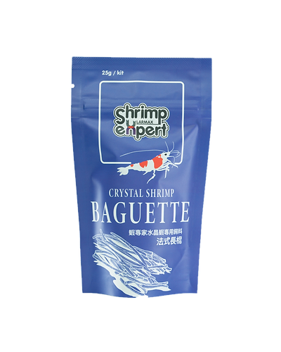 Baguette är ett näringsmässigt komplett foder speciellt utformat för daglig utfodring av kristallräkor, rekommenderat för nya sorters uppfödare, akvarie-växter, akvariebutiker och nybörjare.