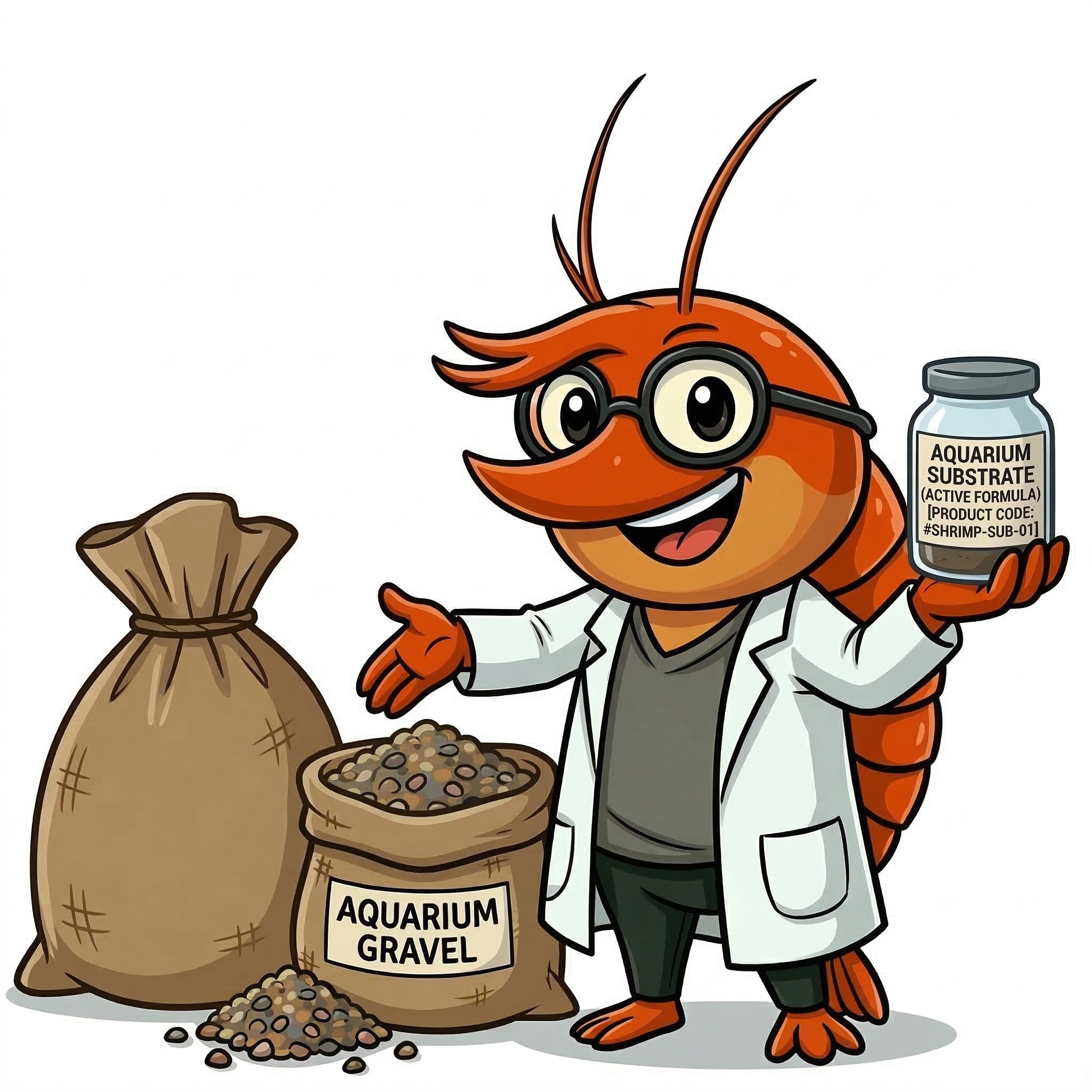 Substratet är mer än bara “grus på botten”. Det påverkar vattenvärden, biofilm, bakterier och i slutändan hela räkornas hälsa.